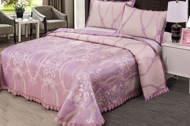 夏韻蕾絲水(shuǐ)洗床單三件套,是一款夏涼席.新型水(shuǐ)洗冰絲提花(huā)面料,色澤明(míng)亮,手感清涼絲滑柔軟,更舒适,是一款可(kě)水(shuǐ)洗的夏涼.适合企業員工福利家紡禮品,涼席廠家-芳恩家紡,歡迎來(lái)電(diàn)咨詢400-870-7600
